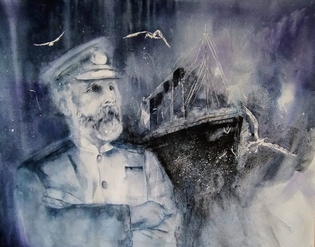My new work, whilst still inspired by nature and the world around us, has developed into a style that evokes an ethereal atmosphere. My latest watercolour, ‘The Abyss’, was inspired by the iconic Titanic and Captain Smith. I used darker tones and water effects to create a more ghostly feel.